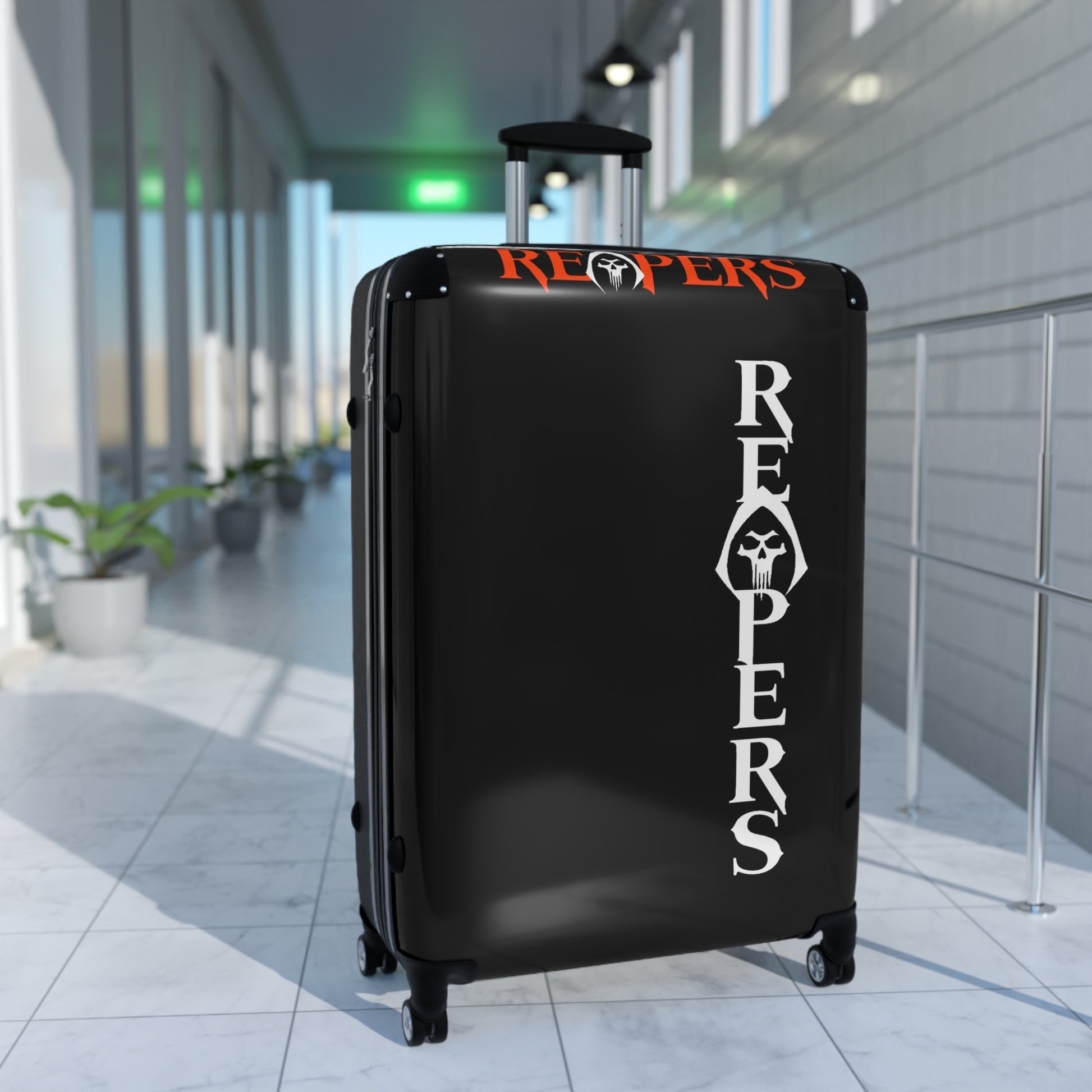 Ya sea que dejes atrás una estación en llamas o simplemente vuelvas a casa para las vacaciones, esta maleta de policarbonato Reapers lleva tu carga con estilo y durabilidad. Con un diseño exterior audaz y ruedas de 360° de suave rodadura, está diseñada para quienes viajan ligeros, pero causan sensación. Los prácticos compartimentos interiores mantienen tu equipo seguro, y el candado integrado protege tu equipaje mientras duermes para recuperarte del ajetreo hiperespacial.